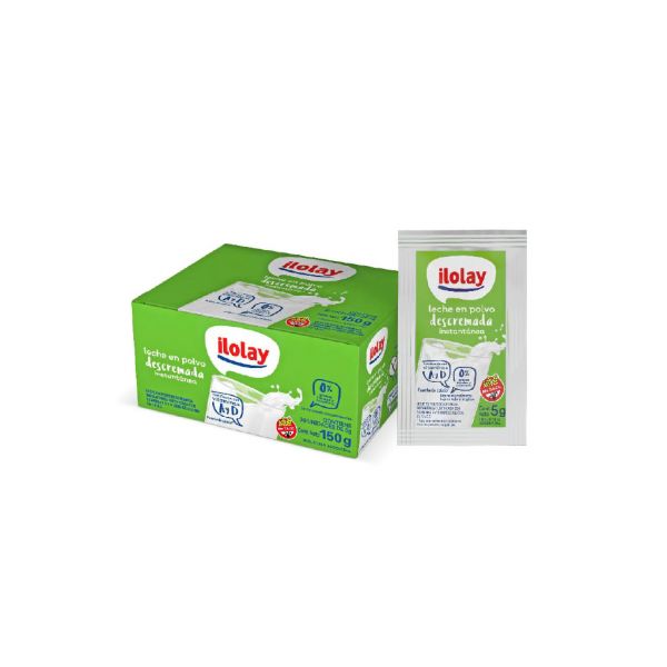Leche Polvo Descremada 30 unidades de 5 g cada una.